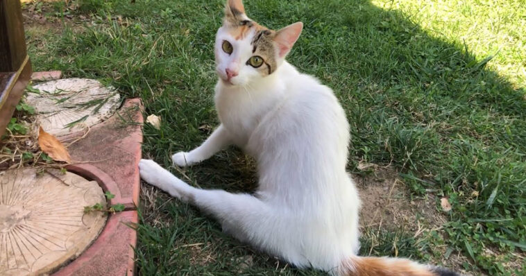 This limping cat was clearly recently a cat mom and she was meowing loudly, it was obvious that she was very hungry and was asking for food.
